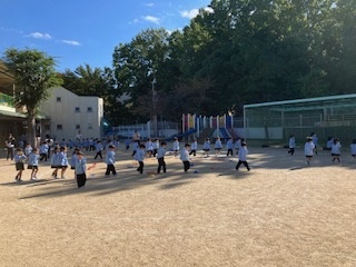 今回は、給食室から出火した想定で、隣地の公園に速やかに避難しました。