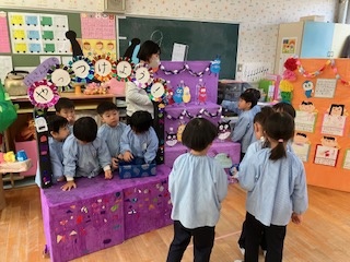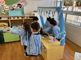 3歳以上の子ども達みんなで、お店屋さんとお客さんになって遊びました。