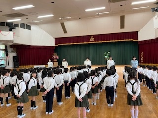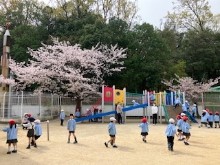 満開の桜のもと、園庭でのびのび遊んでいます。