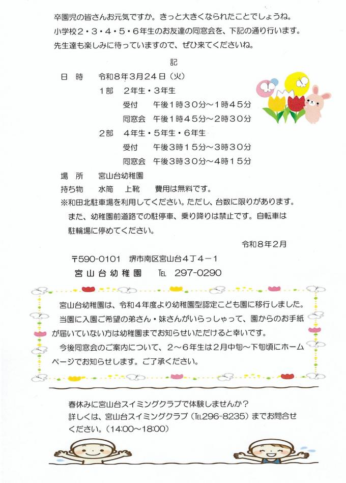 なお、現在1年生の皆さんは、昨年7月の卒園アルバム渡しの時に同窓会を兼ねていましたので、